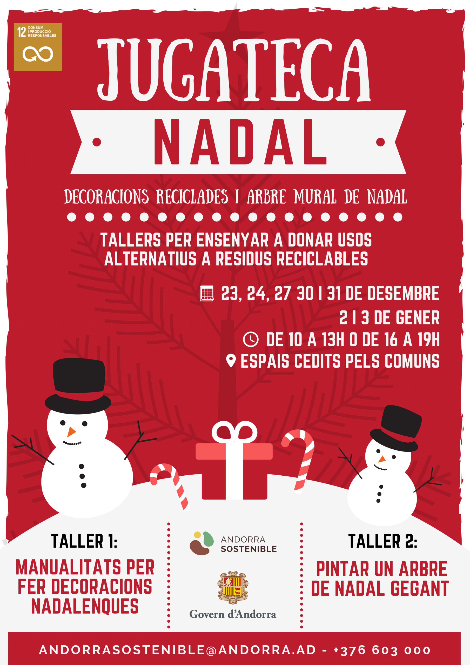 Jugateca de Nadal Decoracions reciclades i arbre mural de Nadal A qui va adreçada?: A famílies amb fills. Objectius: Prendre consciència que els materials i els objectes poden tenir una segona vida transformant-los